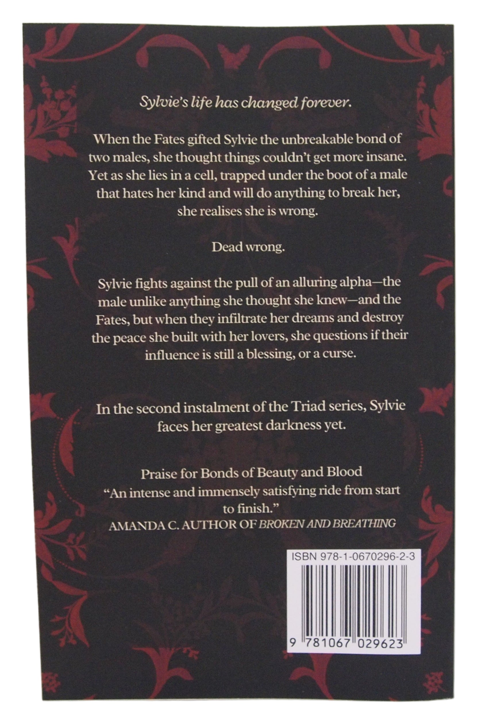 Bonds of Beauty and Blood is the second book in a darkish-fantasy romance series of five books with fae, vampires, and shifters. This why-choose series contains violence, discussion of traumatic themes, mature language, and spice. Beware the cliff.