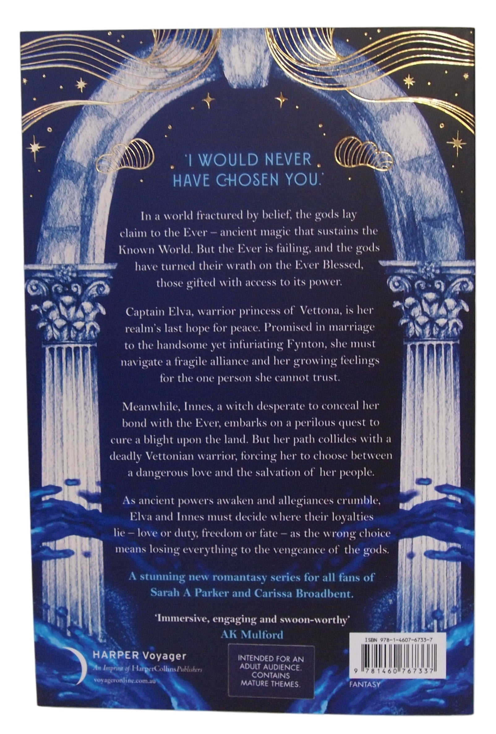 A confident debut and the first book in a series, Ever Blessed features a recalcitrant heroine, a taciturn hero, and potentially world-ending stakes. With engaging world-building and an action-packed plot, this book is a must-read for fans of Sarah A. Parker, Carissa Broadbent, and Rebecca Yarros.