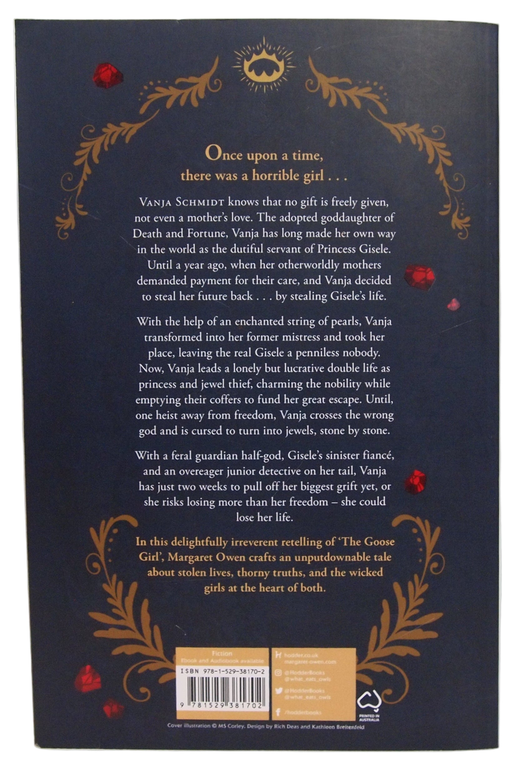 A wickedly irreverent retelling of The Goose Girl, Little Thieves is a YA fantasy about stolen lives, thorny truths, and the horrible girls at the heart of both.