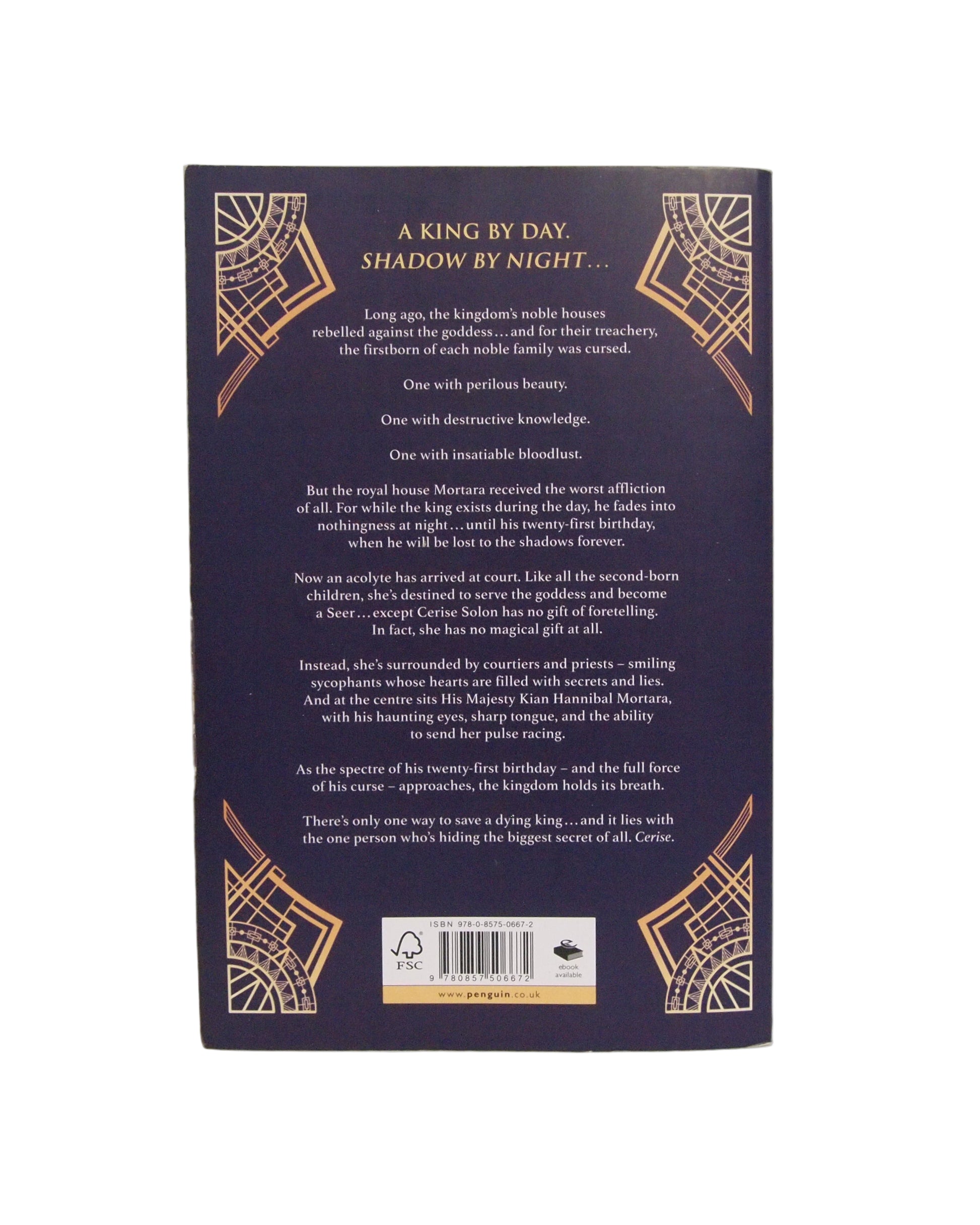In a realm where birth order determines your destiny, second-born Cerise Solon has always believed she’s meant to serve — as a Seer in the goddess’s temple. But she’s failed to show any gift of foresight, bringing shame to her family. Everything changes when Cerise is sent to serve King Kian Hannibal Mortara, a ruler cursed in his bloodline: by day, he’s the radiant king, but at sunset he fades into shadow. As his twenty-first birthday approaches, the curse threatens to consume him entirely — unless Cerise, hiding her own dangerous secret, can save him.